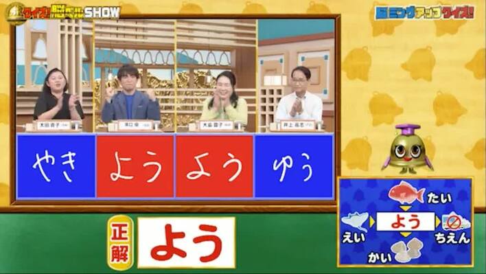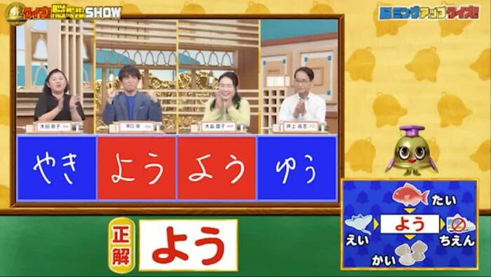 正解は「よう(栄養・太陽・幼稚園・妖怪)」。濱口さんと大島さんの2人が正解!