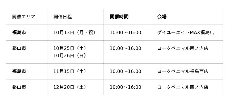 開催日:10月13日(月・祝)、25日(土)、26日(日)、11月15日(土)、12月20日(土)