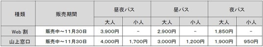 【料金】上記、夜パスまたは昼夜パスのとおり