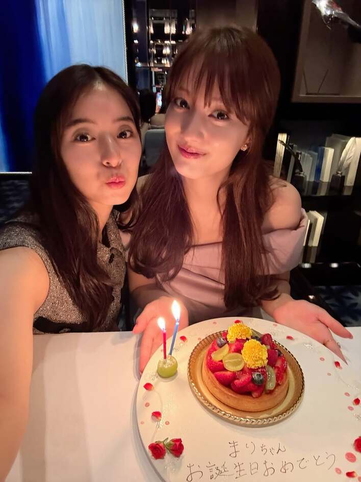 新木さんに30歳の誕生日をお祝いしてもらったようで、「まりちゃん お誕生日おめでとう」と書かれたバースデープレートを持ちながら笑顔をみせたり…