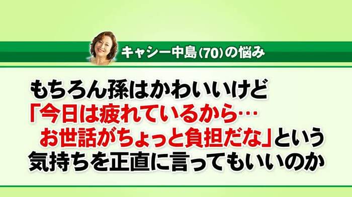 そんなキャシーさんですが、「自分が疲れているときに、孫の面倒を見るのは負担だと、正直に言って良いものか?」と悩んでいるそうです。