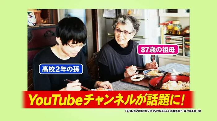 番組では、団地で一人暮らしをする87歳の多良美智子さんの日常を、高校生の孫・あーすさんが撮影して綴っているYouTube「Earthおばあちゃんねる」の撮影風景も取材しました。