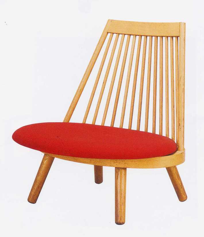豊口克平が昭和37年(1962)にデザインしたものである。日本人の伝統的な座り姿勢を活かし、椅子に腰掛けるだけでなく、あぐらを組んで座れるように、その座面が大変広くかつ低くなっている。