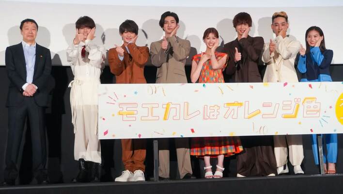 岩本照さん(Snow Man)が主演を務める映画「モエカレはオレンジ色」の公開記念舞台挨拶が、7月9日に行われ、生見愛瑠さん、鈴木仁さん、上杉柊平さん、浮所飛貴さん(美 少年/ジャニーズJr.)、古川雄大さん、藤原大祐さん、永瀬莉子さん、村上正典監督が出席しました。