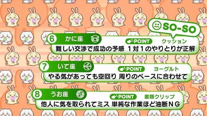 『めざましテレビ』で放送中の「ちいかわ占い」 テレビ放送がない日はお休みで、月~土:朝7時以降に更新予定です。