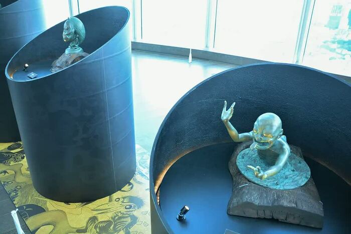 夏の1日を天空の会場で妖怪と過ごして、水木さんの創作の源をじっくり堪能し終わったころには、まぶしいくらいの晴天だったエントランスも陽が落ちて、すっかり「逢魔が時」に。
