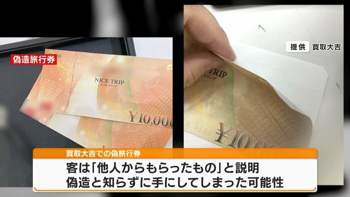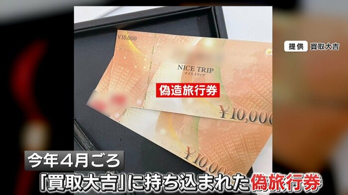 大手買取専門店・「買取大吉」に持ち込まれたのは、全国的に流通している旅行券の偽物。
