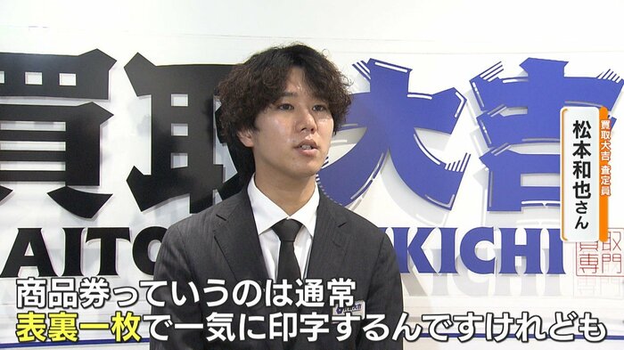 商品券っていうのは通常、表裏一枚で一気に印字するんですけれども、お持ち込みされたものに関しては、表を印刷したものと裏を印刷したものを貼り合わせて作ったものになっておりまして、剥がれてしまっていた。