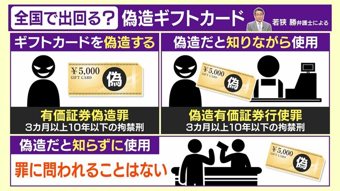 巧妙に偽造されたギフトカードを全国各地の金券ショップなどに持ち込み、現金をだまし取ろうとする事件が相次いで発生しています。