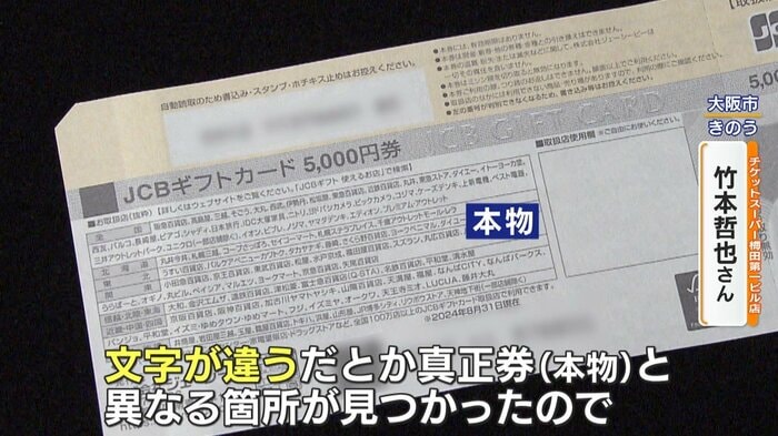 『サン!シャイン』が取材した、大阪市にある金券ショップには、2024年以降 2度にわたって、“偽造された”JCBギフトカードが持ち込まれました。