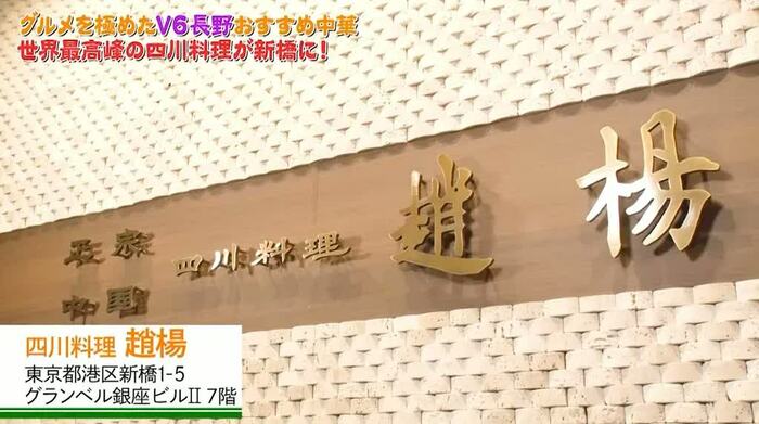 「おしゃれしてきた」というのに待ち合わせ場所がサラリーマンの聖地・新橋、ということで不信感を抱く石橋と大久保だが、長野は自信満々。これまで食べ歩いた1万5000軒から選んだとっておきの1軒「四川料理 趙楊」を紹介した。