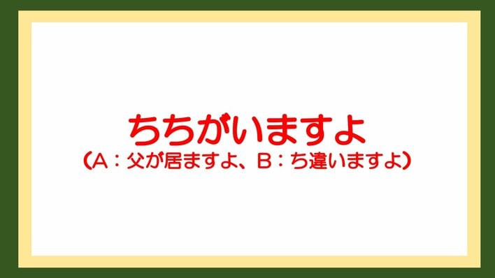 「ち?????よ」。2つのイラストに入る共通のセリフを答えてください。