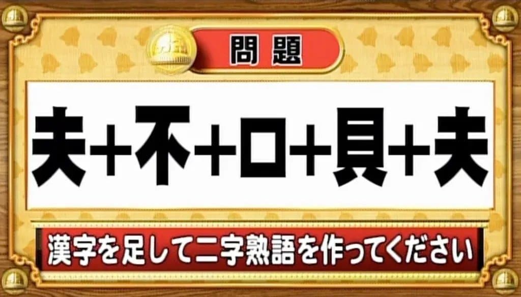 【おめざめ脳トレ】漢字を足すと出来上がる二字熟語は何でしょう?【『クイズ!脳ベルSHOW』より】