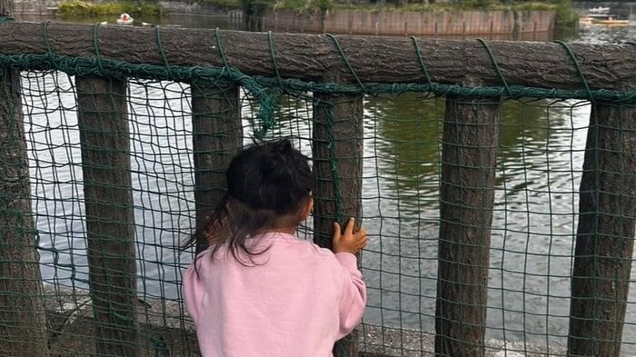 川に夢中になる次女の姿を公開し、「たまらなく可愛い」と反響が寄せられています。