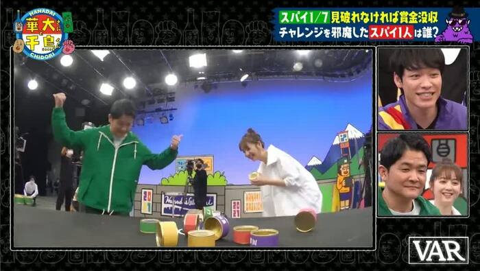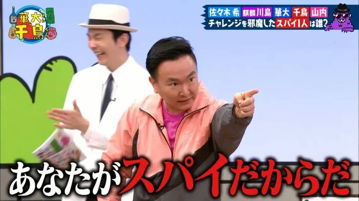 『火曜は全力!華大さんと千鳥くん』では、『所JAPAN』から佐々木希さん、ゲストに川島明(麒麟)さんを迎え、博多華丸さん、博多大吉さん、千鳥(大悟さん、ノブさん)、山内健司(かまいたち)さんと「スパイ7分の1」に挑みました。