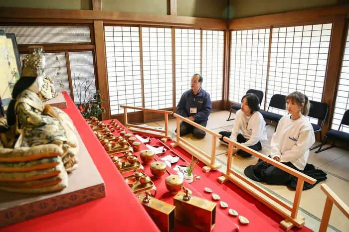 次に、明治から大正期に建築された邸宅を整備した「角田市郷土資料館」を見学した2人。そこで大正時代の雛人形や伊達政宗が好んでいたというお香、300年以上前の雛壇を見て角田市やそれぞれの説明を受けた。