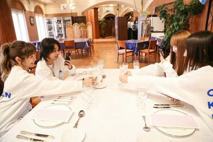 見た目にもこだ わっており、料理が運ばれてくるとゲスト全員が一⻫にスマホを取り出し、写真を撮るのに夢中に。途中でYOSHIが「俺たち何やってるんだよ」と突っ込んだほど。