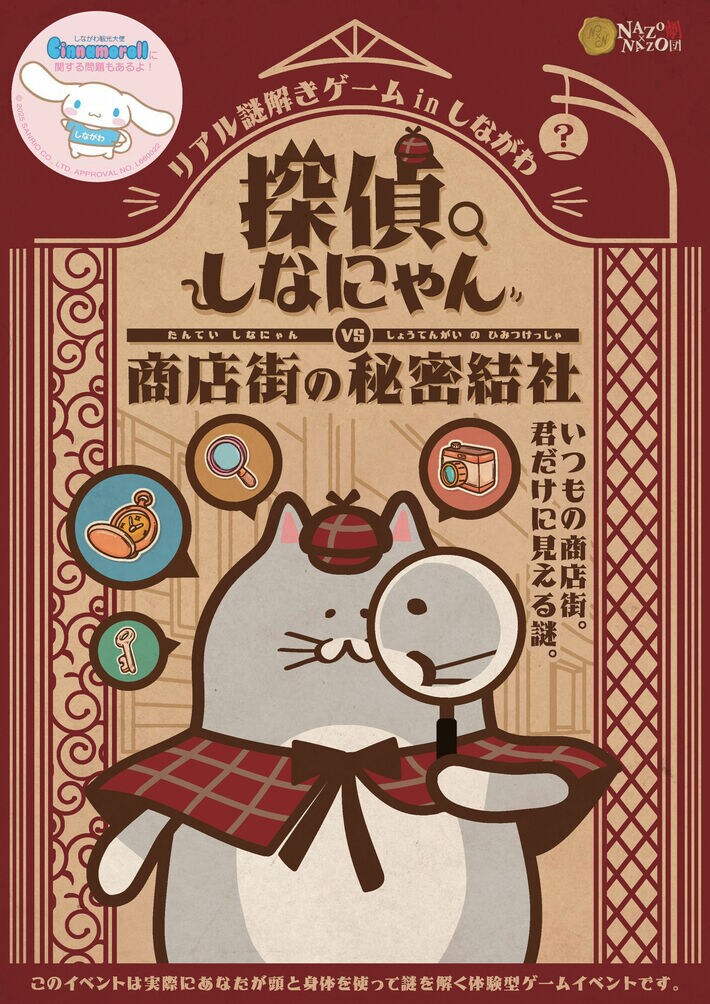 探偵しなにゃんが話したのは、3つの商店街で探し物をしてほしいという依頼についてだった。それはあなたにとってはいつもの街。中延商店街、武蔵小山商店街パルム、そして西小山商店街。そこに隠されたある秘密結社の手がかりを探してほしいという。