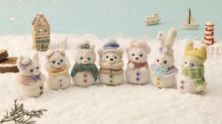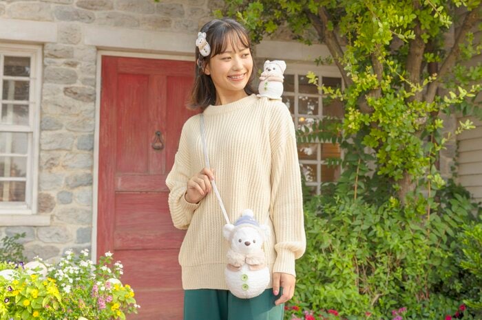 他にも、真っ白な雪だるまにのダッフィーがショルダーバッグになったアイテムや、クリップで肩にくっつけることができるぬいぐるみも登場。