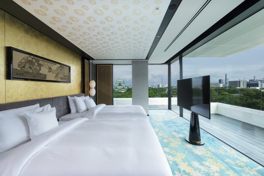 <客室について>エスパシオ ナゴヤキャッスルの客室は、尾張名古屋の歴史と現代の匠の技が紡ぐ極上の空間で、サイズや趣が異なる違う平均70平方メートル 超の全100室をご用意しております。その中でも特筆すべきは日本が世界に誇る6人のアーティストによって手掛けられた6つの「アートコレクション」。箔、唐紙、組子、染、漆、彫刻などの日本の伝統工芸で設えた、まさに奥御殿ともいえる特別室で美の世界を演出いたします。また全室にバルコニーやビューバスを備え、名古屋城や名古屋の夜景を臨むことができます。一部の客室にはプライベート空間で愉しめる「温泉コレクション」を完備し、疲労回復、健康増進など、心と身体を解きほぐす、贅沢なひとときをお届けします。ベッドマットレスもベッドブランドとして名高い「サータ」のエスパシオモデルを採用し、深いやすらぎに包まれる極上の眠りをサポートします。日本の歴史と伝統が織りなす豪華絢爛な空間で寛ぐ、極上のパーソナル時間をご提供します。