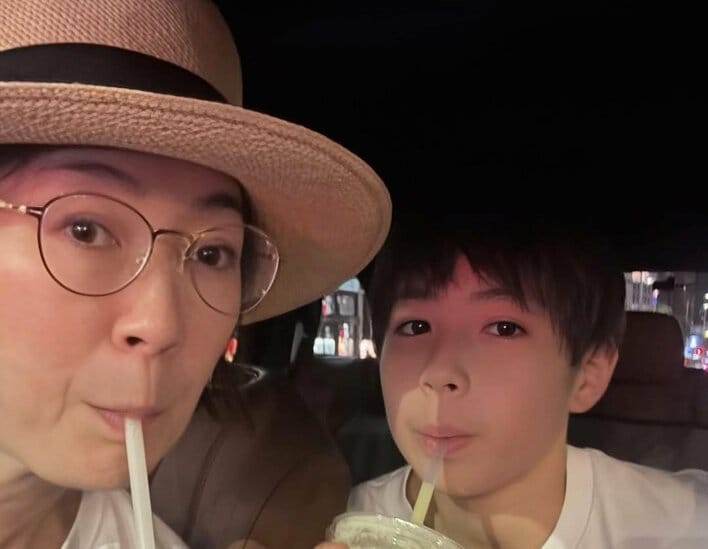 「口元がソックリ」寺島しのぶ 長男・眞秀とジュースをゴクゴク!