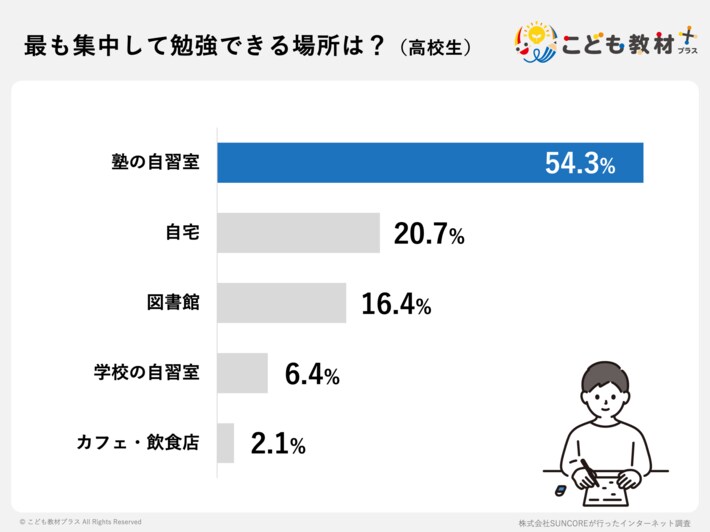 高校生の勉強場所、2位以下に大差をつけ「塾の自習室」がトップ