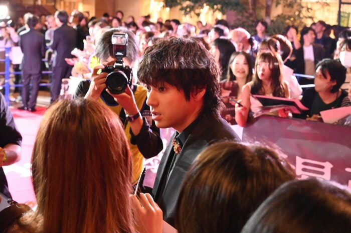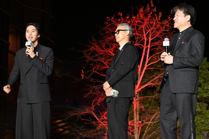 そして寛一郎さんは「まさかレッドカーペットの時間がこんな長くて、ファンサービスが濃厚だとは思わなくて。そろそろ僕の膀胱が爆発しそう」と告白し、会場には再び笑いが。佐藤さんは「レッドカーペットで何を(言う)!寛一郎の膀胱が心配ですよ」と気遣いました。