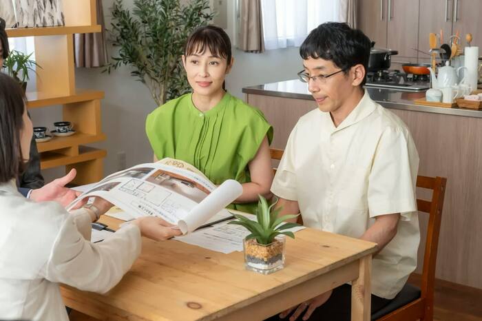 水野美紀さんと野間口徹さんは、寝室のリノベーションを考え、「まるふく工務店」に見積もり依頼をする河内夫婦を演じます。