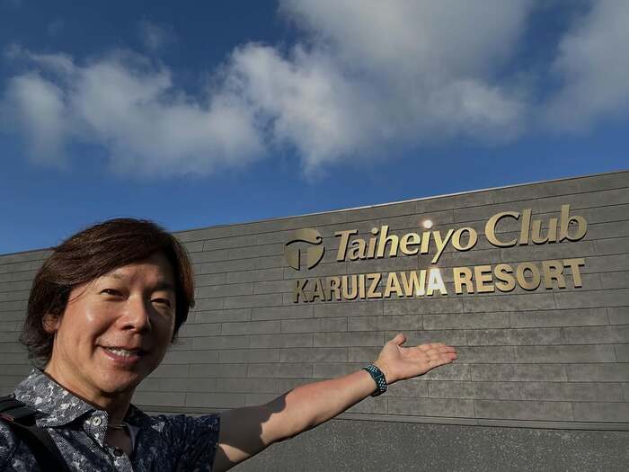 訪れた場所は軽井沢だったそうで、公開された写真にはリゾート地の看板前に立ち、手を広げて笑顔を浮かべる佐藤さんが収められています。