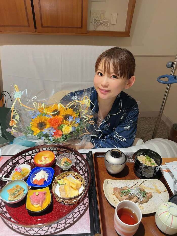 夫からのプレゼントは、「双子の名前イメージにちなんだフラワーブーケ」だそうで、病室のベッドに座ってニッコリの中川さん。「入院景色が明るくなります嬉しいなあ こんなサプライズはありがたいね」と、仲睦まじい夫婦の様子をつづりました。