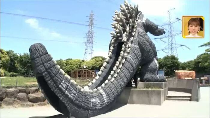 それが、高さ10m、重さ5tの「ゴジラの模型」。しかもこちらのオブジェ、尻尾がすべり台となった、無料で遊べる遊具となっています。