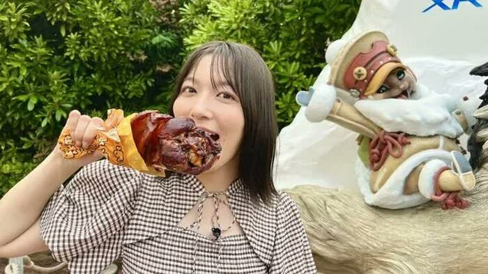 この巨大なお肉を豪快にかぶりついたかやちゃんは「こんがりしているからかなり香ばしくて肉!って感じですね。こんな大きいお肉そのまま食べるの人生で初めてかな」と味はもちろん、見た目にも大満足でした。