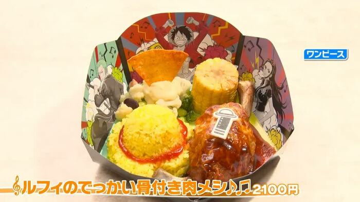こちらは、麦わら帽子型のターメリックライスと大きな骨付き肉が入ったルフィをイメージしたプレート。