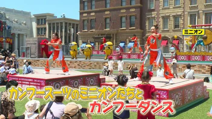 カンフースーツに身を包んだミニオン達と一緒に誰でも簡単に覚えられるカンフーダンスで、大人も子供も一緒に踊って楽しむことができるんです。