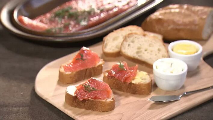 ここで、ひと晩寝かせてサクラマスがしっとりなめらかになった「グラーヴィロヒ」が登場。「朝ごはんに、コーヒーと一緒に」とハッリさんが説明すると、すかさず隣の芳さんが、「フィンランドでは家庭料理として食べられていて、カフェやパン屋さんにもあるんです」と補足してくれます。