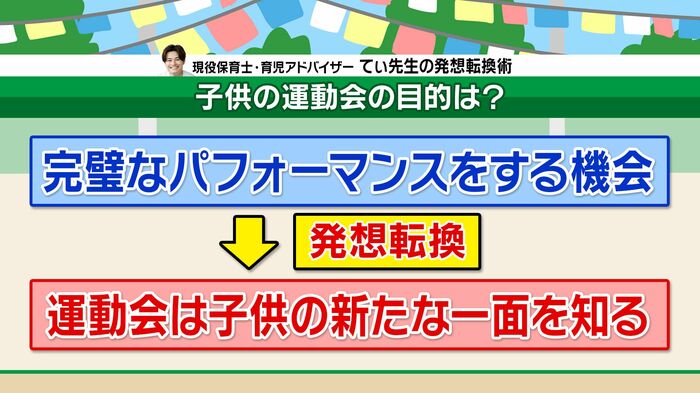 てぃ先生は「運動会などの行事は、子どもの新たな一面を知る貴重な機会。お友だちの存在がお子さんの中で大きくなって、運動会よりお友だちが大切と思うようになったことを成長だと捉えたらよいのでは?」とアドバイス。