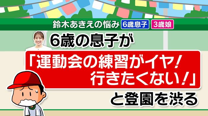 鈴木さんは「6歳の息子は去年までは行事をノリノリで楽しんでいたのに、運動会の練習が長くて友だちと遊ぶ時間がないと登園を渋るように。運動会が終わった瞬間に息子の呪縛は解けたのですが、私の『運動会ショック』が抜けない」と、悩みを打ち明けました。