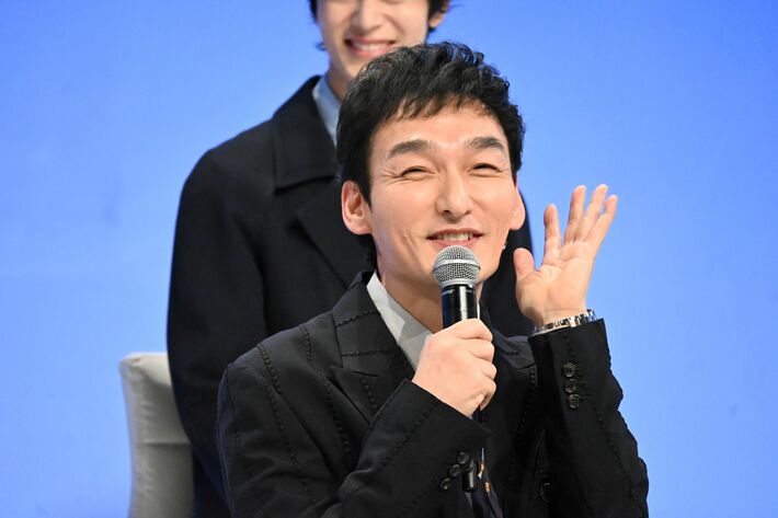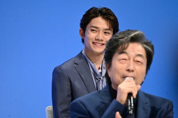 要さんは「(草彅さんは)古着がお好きでオシャレで、僕もそれに影響されて撮影後半では古着を着出して。ちょうどネルシャツを探していたときにいただいたので、恋愛に似た気持ちになって。通じ合ってるんじゃないか」と話し、会場を盛り上げました。