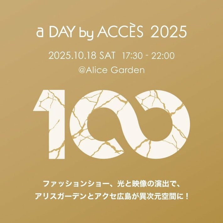 2025年10月18日(土)、セレクトショップ「PARIGOT」を展開する株式会社アクセの創業100周年を記念し、広島のランドマーク「アリスガーデン」にて一夜限り特別ファッションイベントを開催します。
