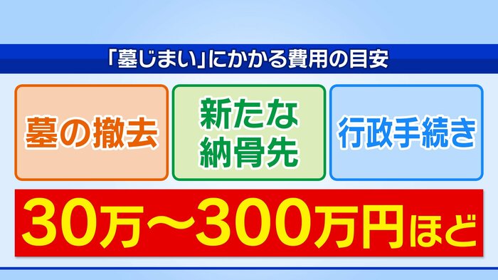 吉川さんによると「墓じまい」をするには、「墓の撤去」「新たな納骨先」「行政手続き」が必要で、それぞれの手続きに合計30〜300万円ほどかかるといいます。