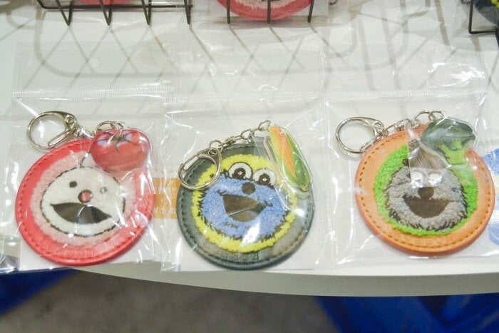 しっかりした作りの「相良刺繍キーホルダー」(全3種)は、スンスンにはトウモロコシ、ノンノンにはトマト、ゾンゾンにはブロッコリーのアクリルチャーム付き。