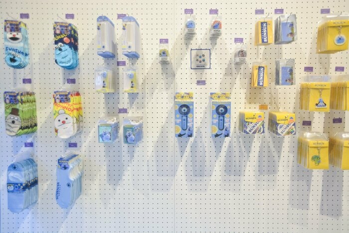 壁面のディスプレイも見逃せません。スンスン、ノンノン、ゾンゾンがプリントされた、食べるのがもったいないキュートな「プリントクッキー」もフジテレビ限定!カラフルなボックスが目を引きます。