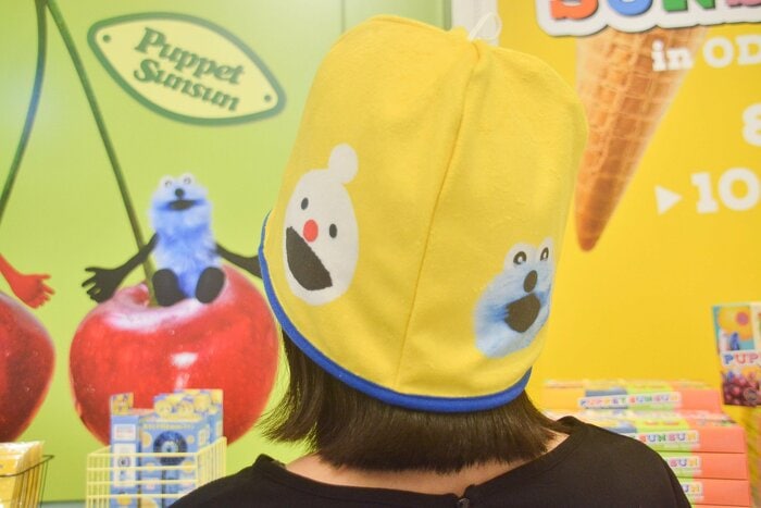 フレッシュ感のあるキービジュアルが展開されている「PUPPET SUNSUN in ODAIBA」。店舗の入口でお出迎えする、スンスン、ノンノン、ゾンゾンも変わらぬ佇まいで和ませてくれます。