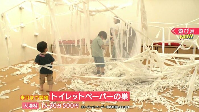 (10月まで開催 入場料1人30分500円 ※トイレットペーパーは再利用しています)