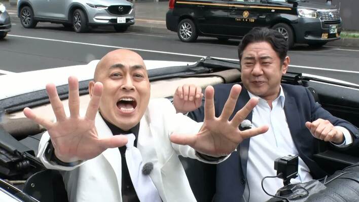 長谷川さんは、相方の渡辺隆さんを引き連れ、土砂降りの大雨の中あえてオープンカーで凱旋するというスターらしい豪快さを見せつけます。