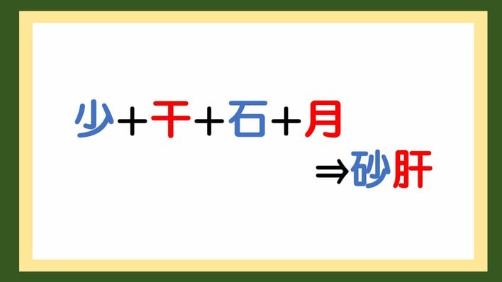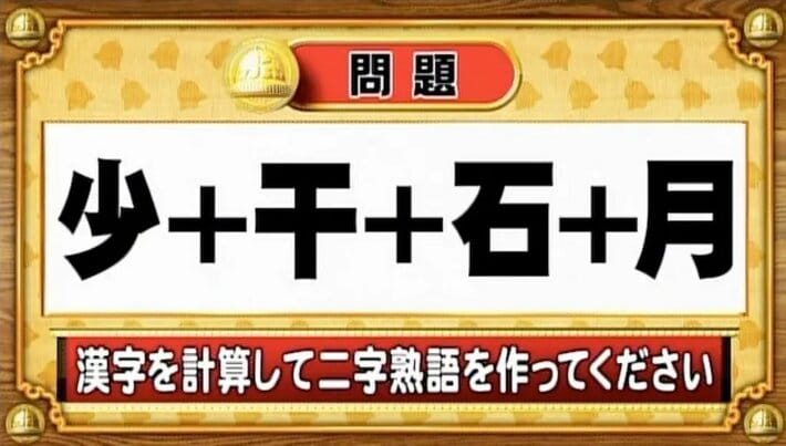 「少+干+石+月」。漢字を足して二字熟語を作成してください。