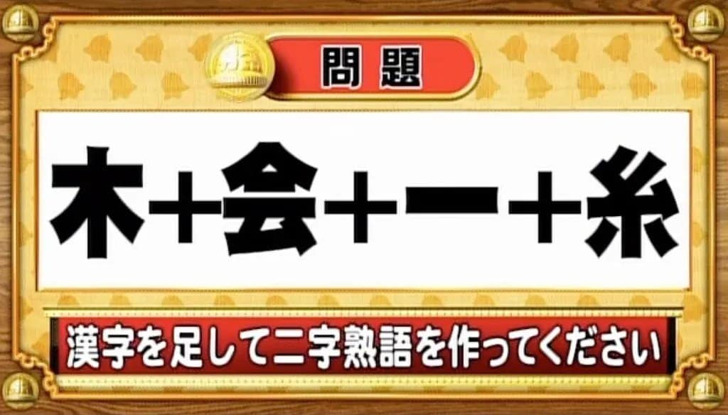 【おめざめ脳トレ】漢字を足すと出来上がる二字熟語は何でしょう?【『クイズ!脳ベルSHOW』より】