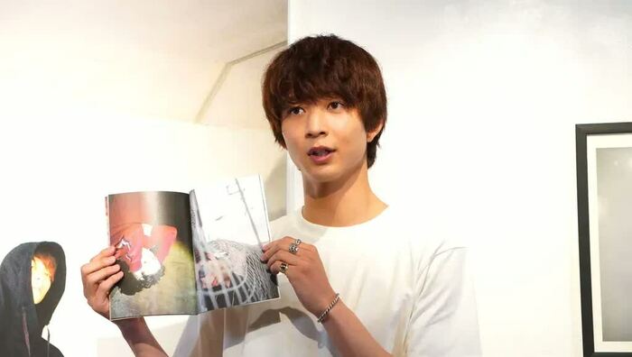 また、お気に入りのページは、「フラッシュの多い、強い写真に憧れがあったので、そういうのを意識した1枚です。サングラスや男らしい要素はあまり想像つかないと思うんですけど、自分は(そういうのが)好きなので、町中にあったネット(越し)に(笑)。試行錯誤した上で、選びました。思い入れのある強い1ページです」と紹介しました。