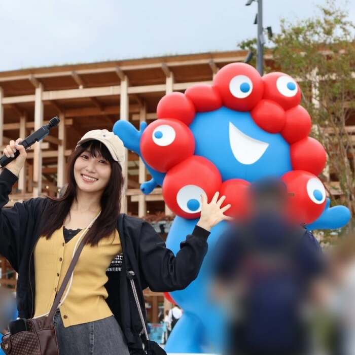 菅井友香 大阪・関西万博でミャクミャク像の前で同じポーズ