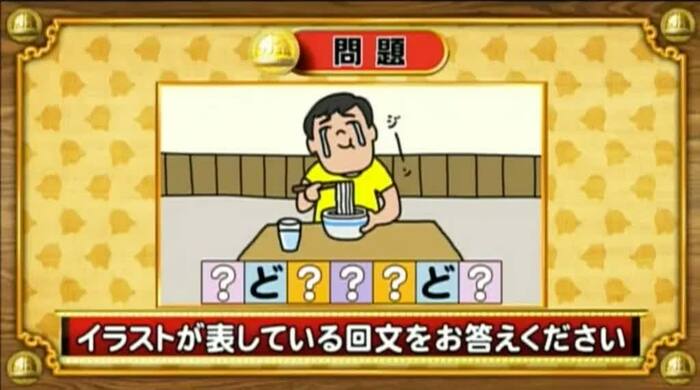 最後は、イラスト回文の問題。次のイラストが表している回文を答えてください。